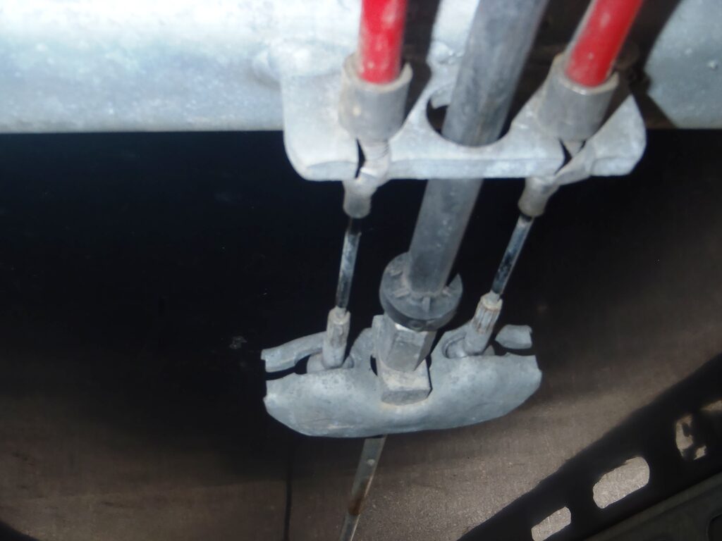ついでですが、これは駐車ブレーキのワイヤー。これを締め付ければ、ブレーキがきつくなる(はず)少々緩かったので、調整しておきました。