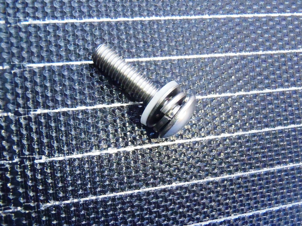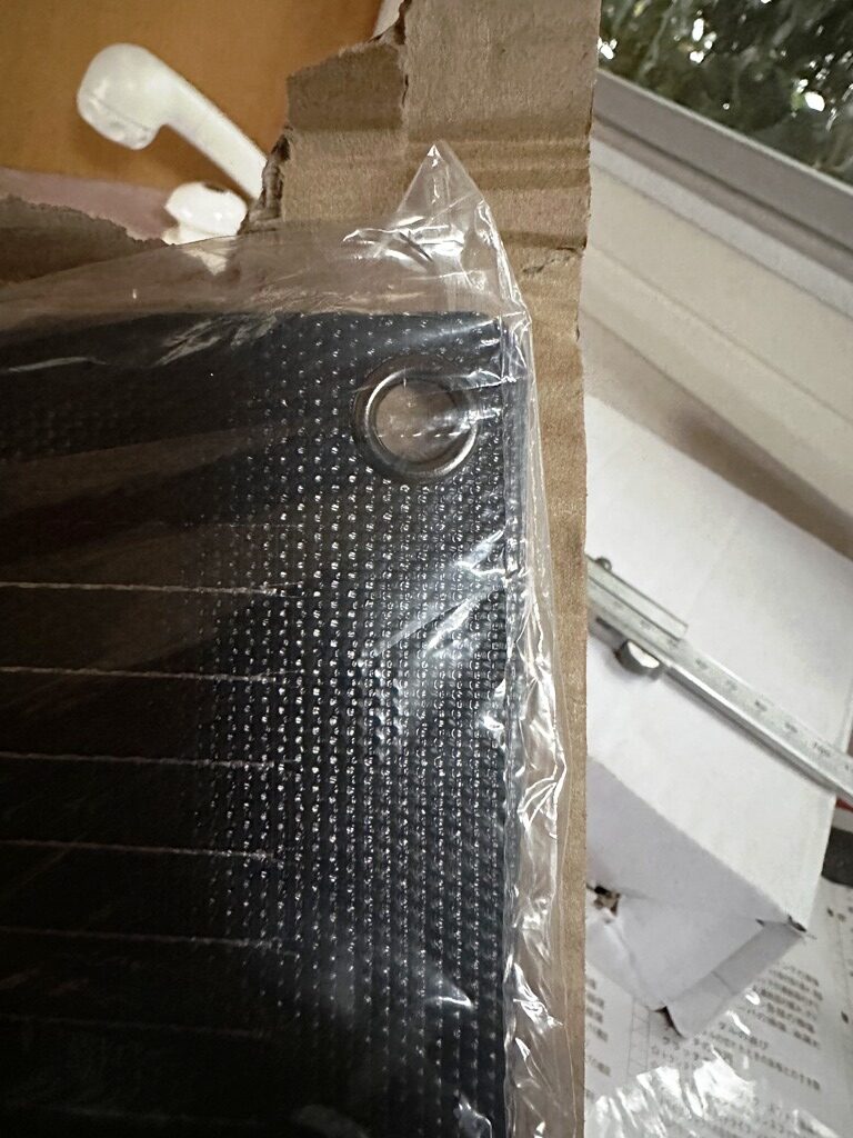 ソーラーパネルにはこのようなハトメ穴が全部で6か所あります。