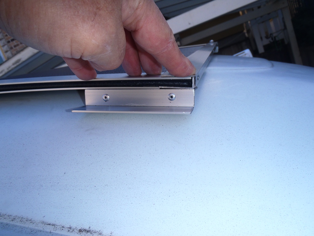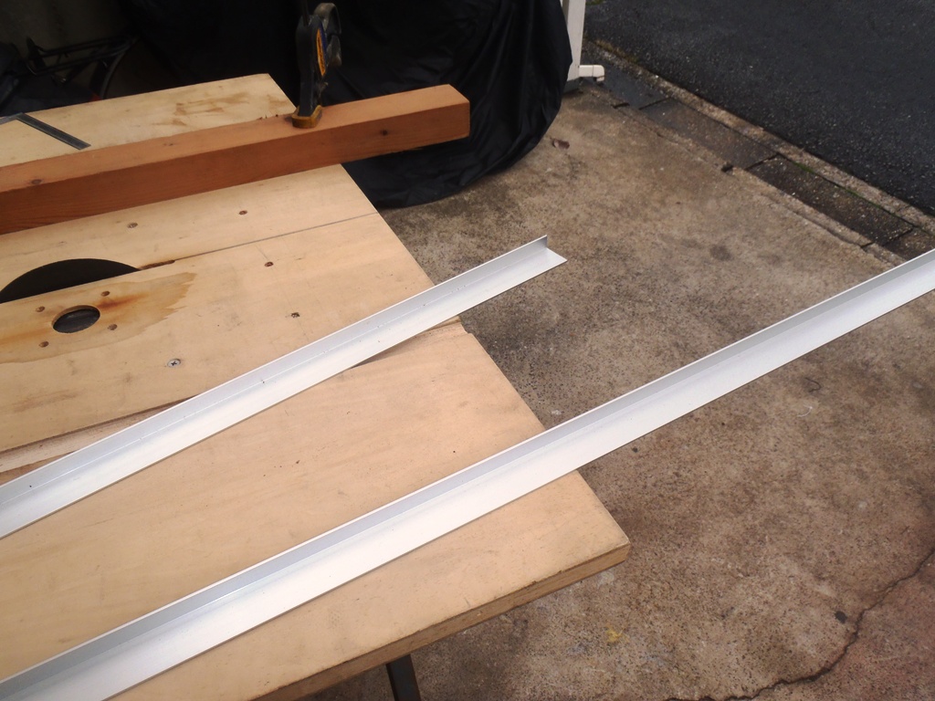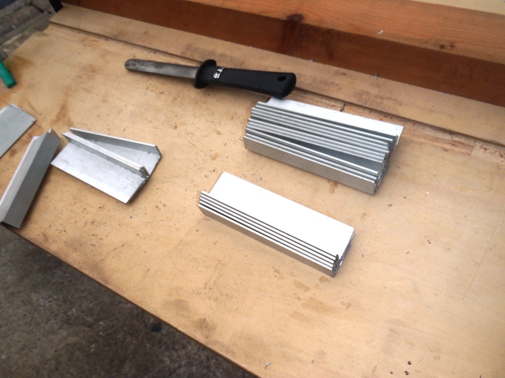 ソーラパネルの前端と後端はコの字にしてカバーします。適当なサイズのものが無かったので、L字アングルをリベット留して作ります。