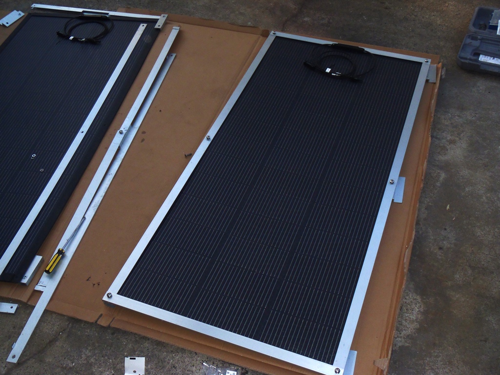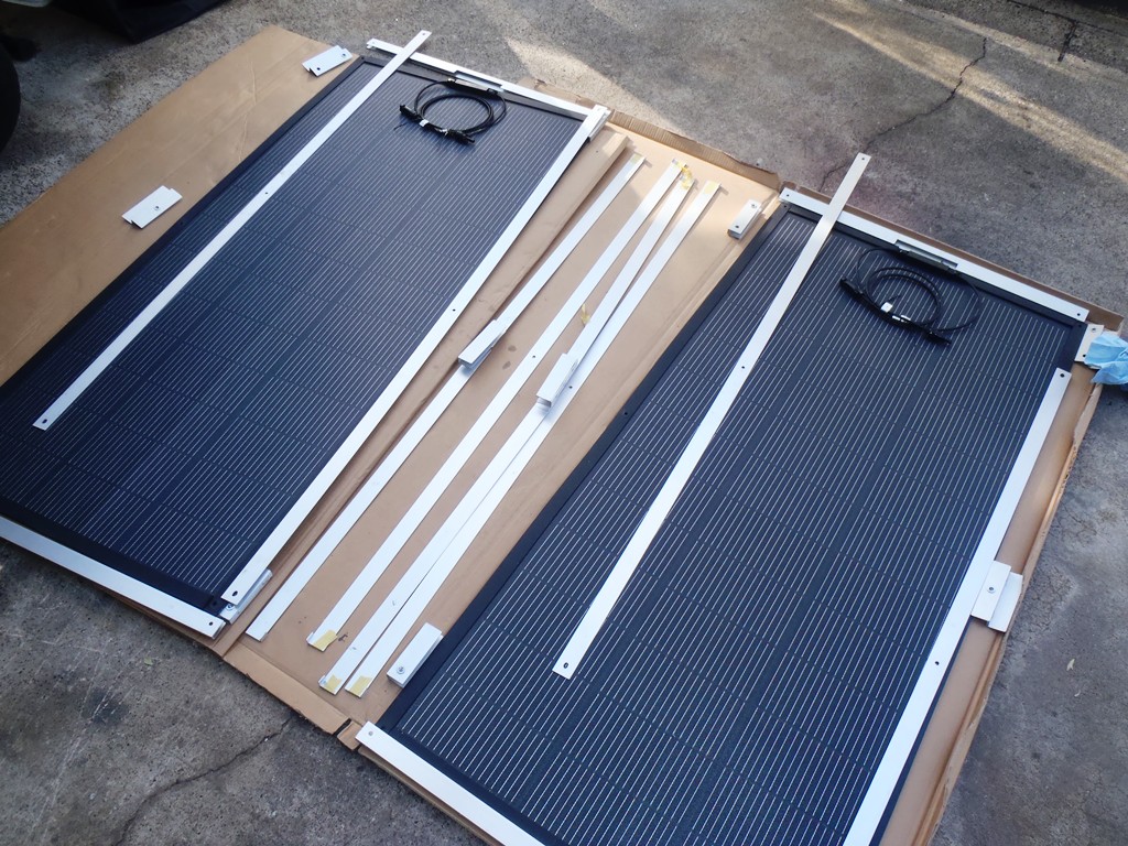 ソーラーパネルはフレキシブルタイプの200Wを2枚使うことにしました。