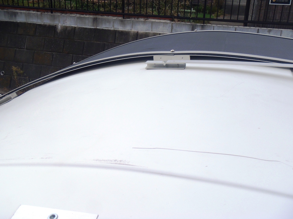 それに、このキャンピングトレーラ、屋根が若干湾曲しているのです。