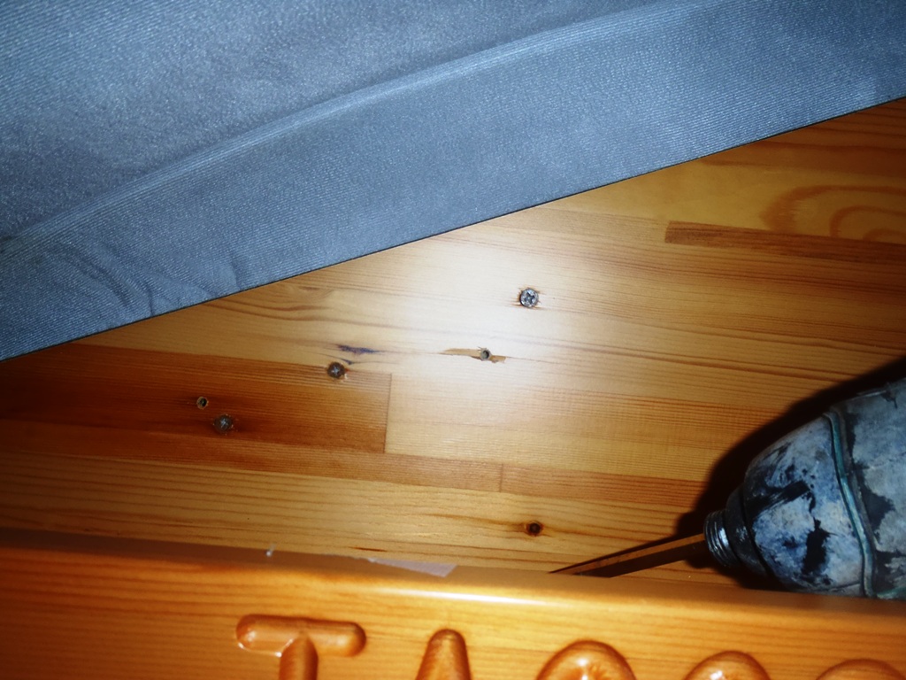 この部分ですが、化粧板を外すとネジがあります。これを外して無事にキャビネを外せました。